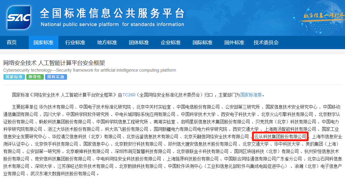 近日,國家標準GB/T 45958-2025《網(wǎng)絡(luò)安全技術(shù) 人工智能計算平臺安全框架》正式發(fā)布。該標準由全國網(wǎng)絡(luò)安全標準化技術(shù)委員會歸口管理,華為技術(shù)有限公司牽頭,云從科技作為核心起草單位之一,深度參與了標準制定工作。 這項將于2026年2月1日正式實施的國家標準,為人工智能計算平臺建立了系統(tǒng)化的安全框架,規(guī)定了安全功能、安全管理和角色安全職責(zé),將有效應(yīng)對硬件漏洞、訓(xùn)練數(shù)據(jù)泄露、對抗樣本攻擊等新型安全威脅。